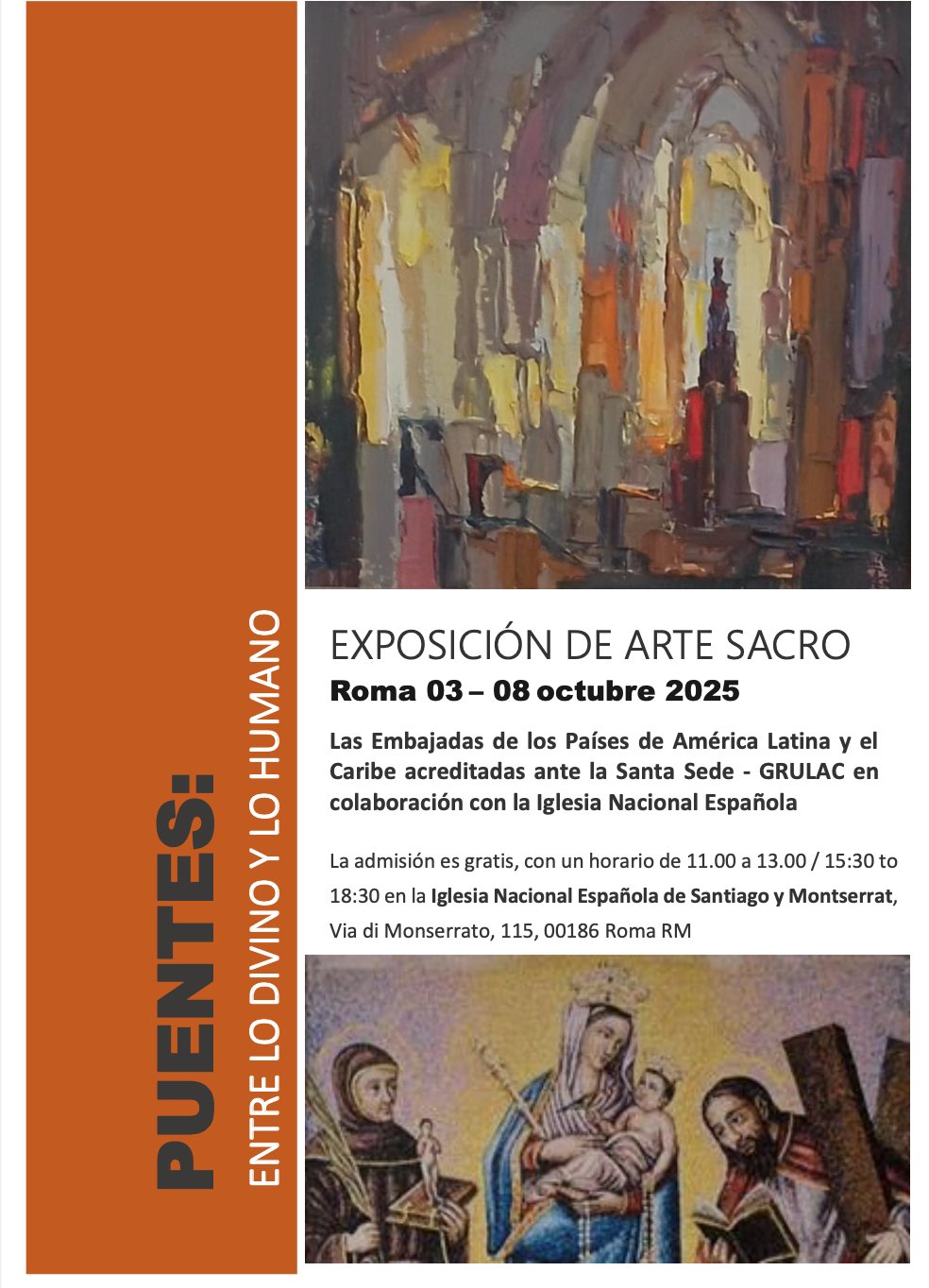 En el marco del Jubileo 2025, Roma acoge la exposición de Arte Sacro «Puentes: Entre lo divino y lo humano», organizada por el Grupo de Embajadas de América Latina y el Caribe acreditadas con la Santa Sede, en colaboración con la Iglesia Nacional Española de Santiago y Montserrat.