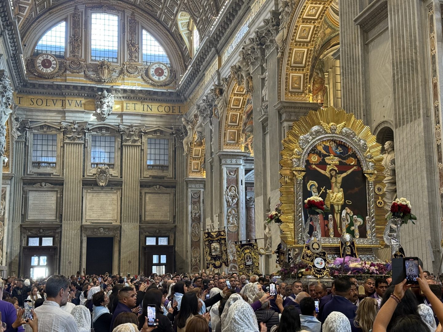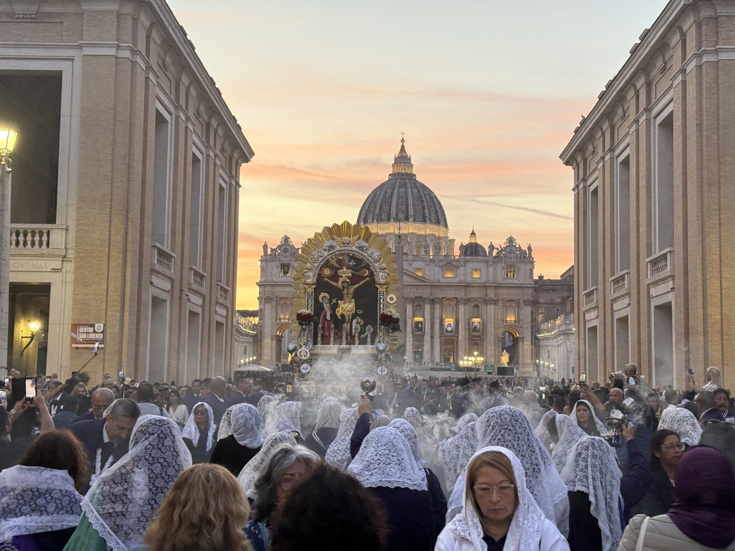 Las actividades en homenaje al Señor de los Milagros concluyeron con una procesión de clausura desde la Basílica de San Pedro hacia el Largo dei Mutilati ed Invalidi di Guerra, en medio de cantos y oraciones que reafirmaron la devoción al Señor de los Milagros como símbolo de esperanza y posibilidad de construir una vida más sana, más justa, más humana, a imagen y semejanza de Cristo.